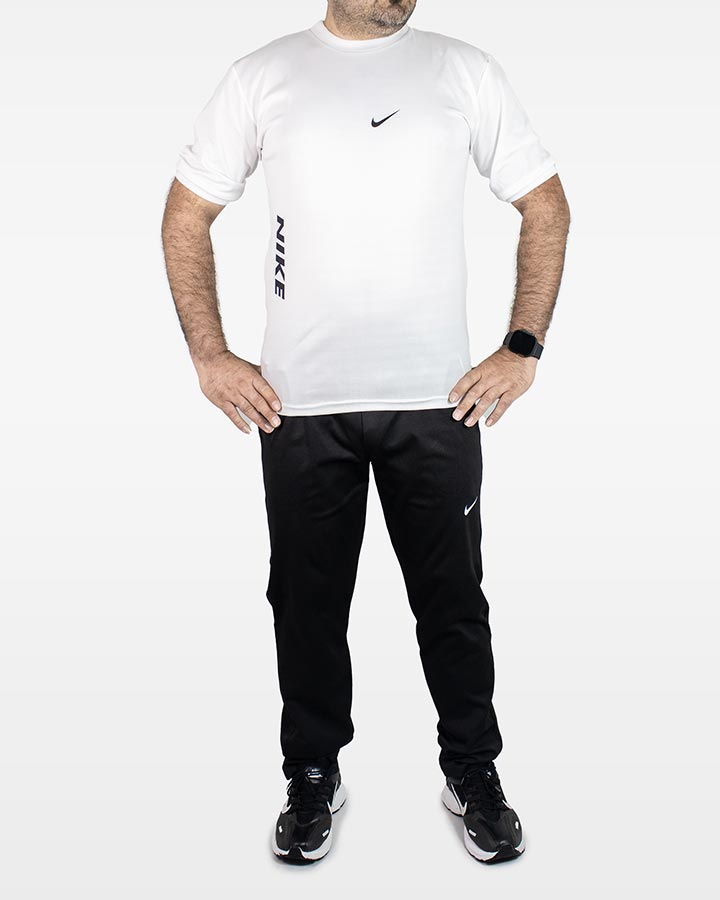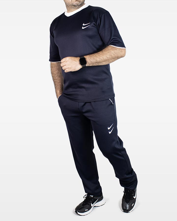 این مدل ست تیشرت و شلوار اسلش مردانه دارای لوگوی برند نایکی Nike است.