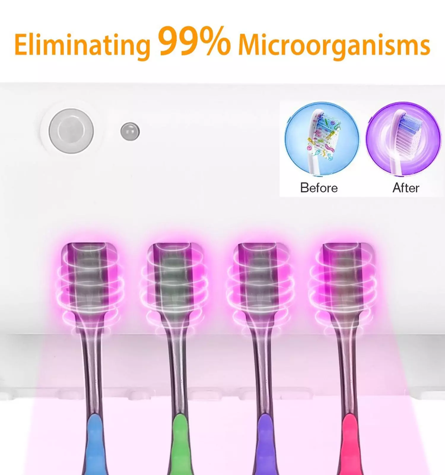 به طور کلی با تکنولوژی پیشرفته ای ( اشعه UV 270 نانومتری ) که این دستگاه آنتی باکتریال دارد، باعث از بین رفتن 99 درصد میکروب ها و باکتری های موجود در مسواک می شود.