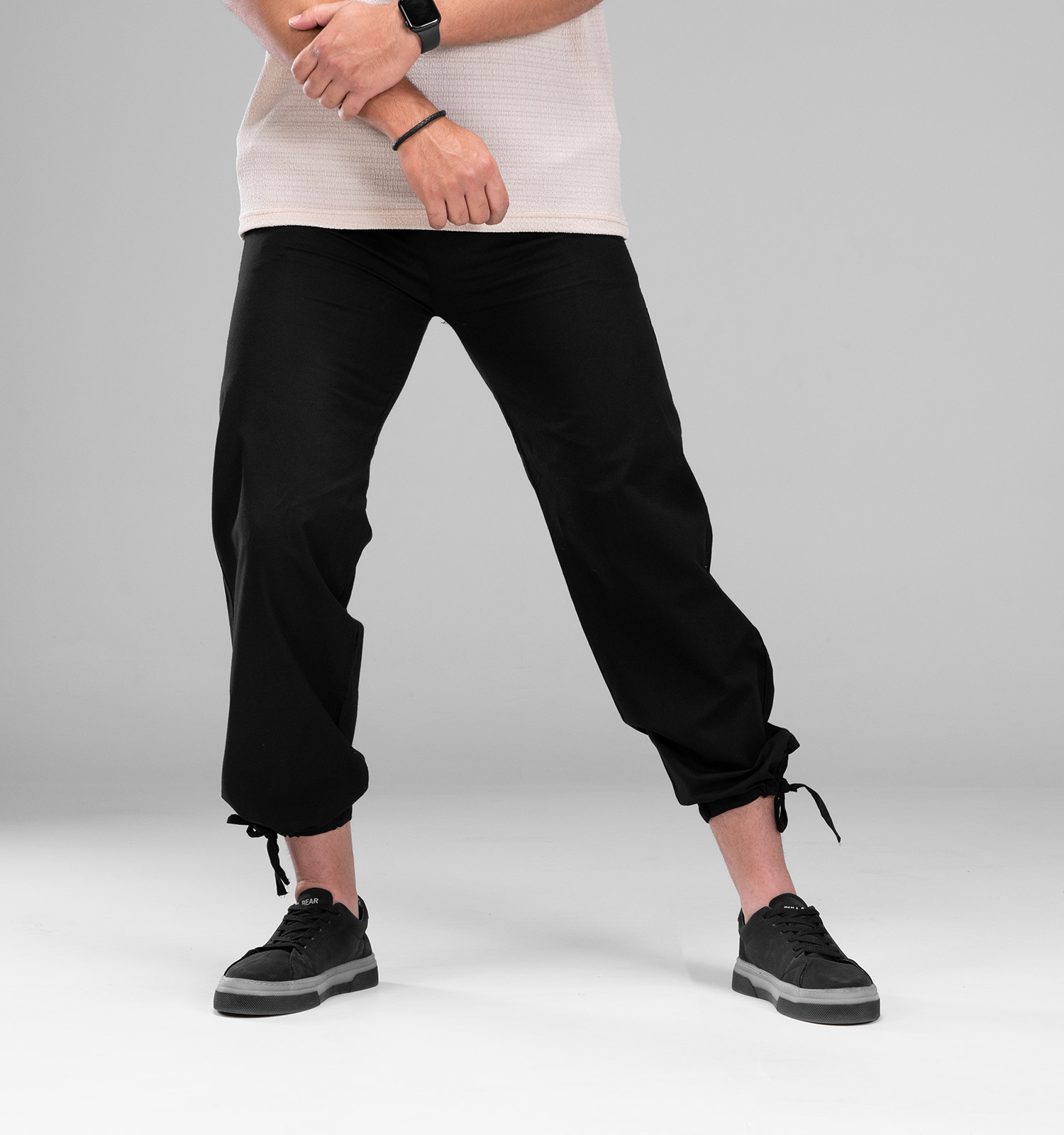 شلوار بگ مردانه رنگ مشکی جنس کتان مدل جلوزیپ دار بالنسیاگا Balenci_Zipper