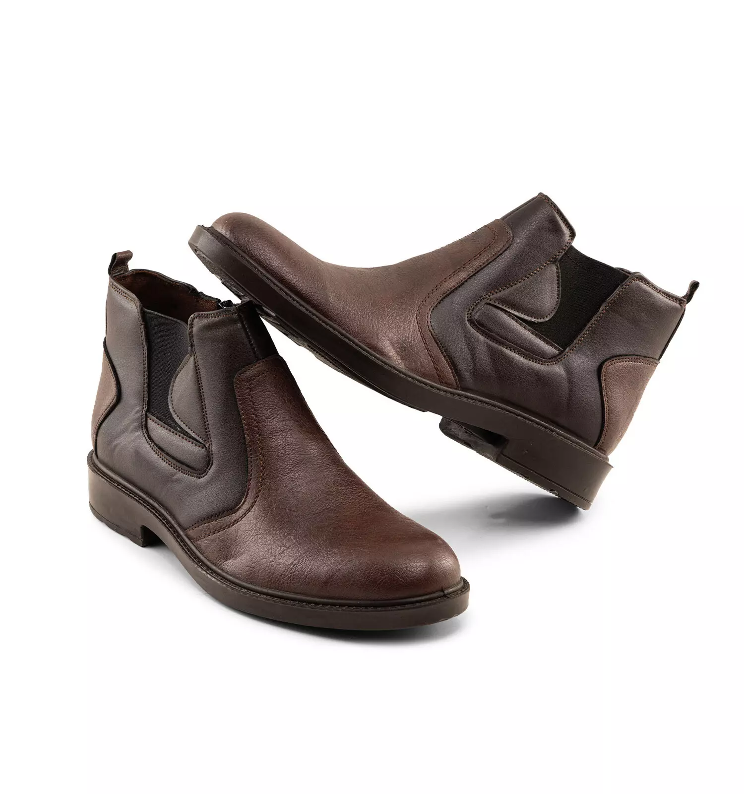 کفش نیم بوت چرم قهوه ای مردانه مدل بغل کش دار