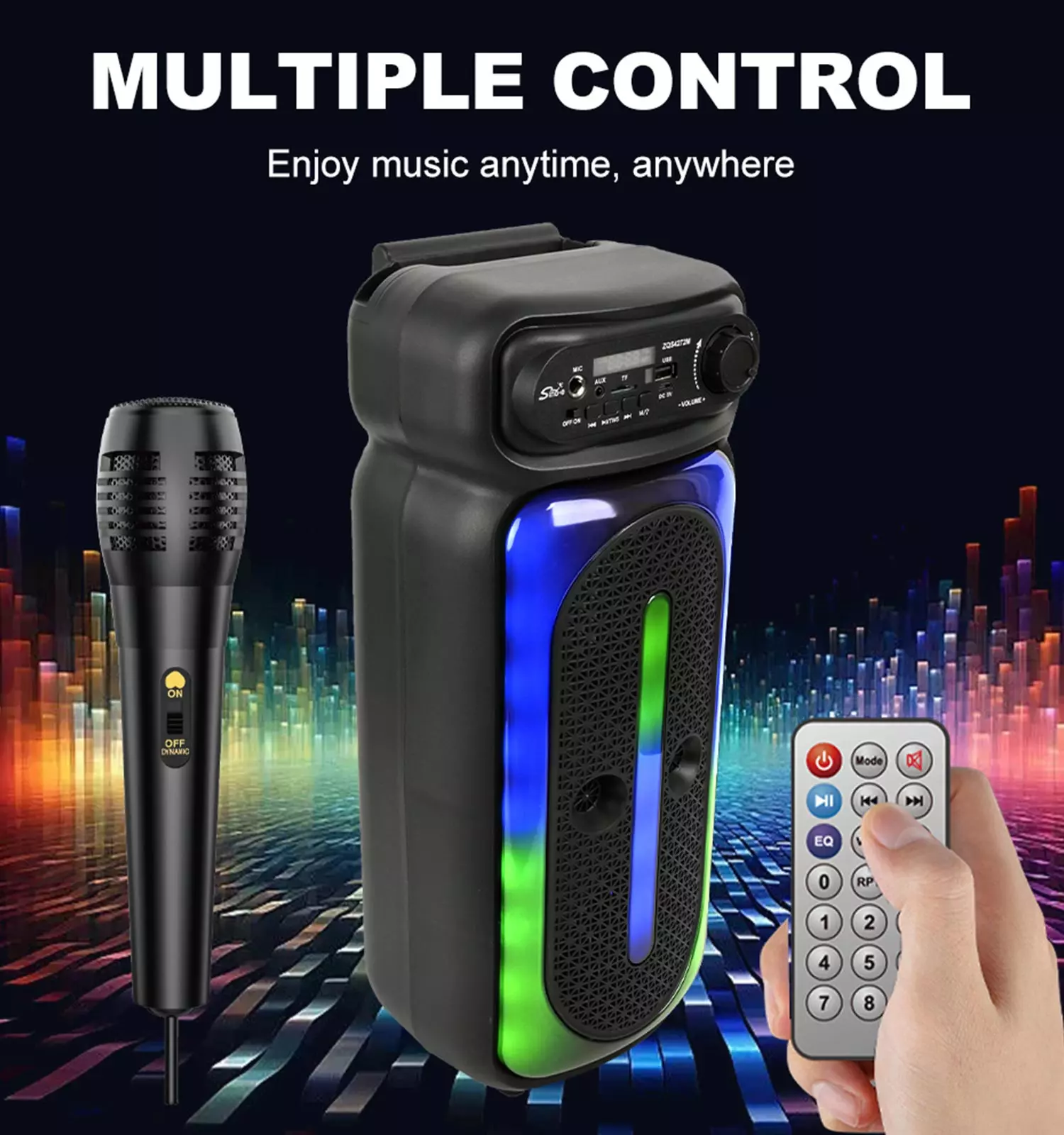 اسپیکر بلوتوثی میکرفون دار با نورپردازی و کنترل از راه دور