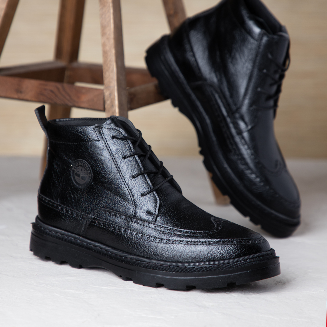 کفش نیم بوت ساقدار قهوه ای جنس چرم مردانه AYSONA