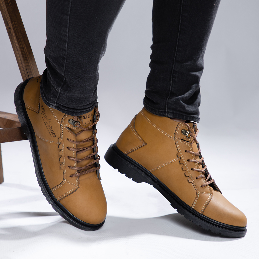 کفش ساقدار چرم عسلی مدل مردانه کلاسیک