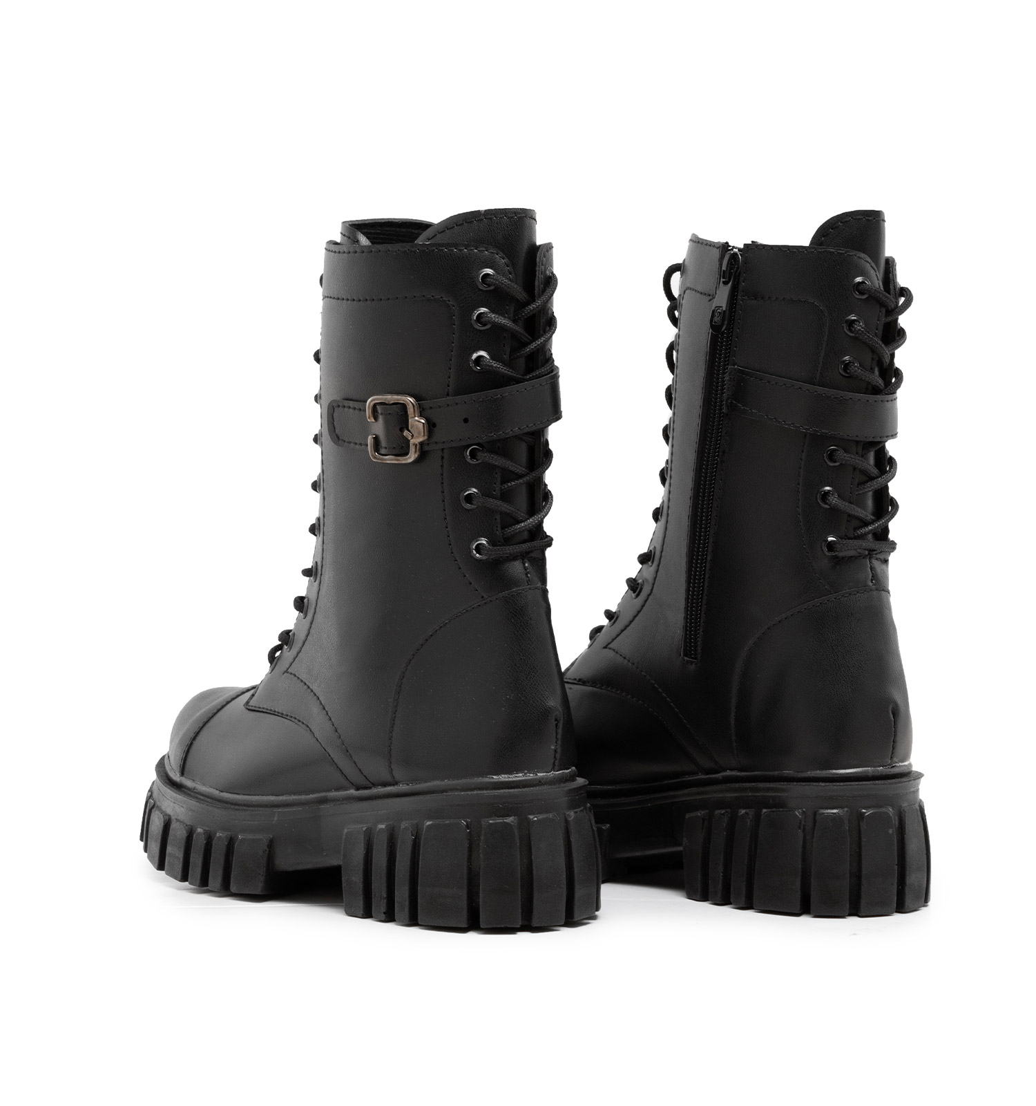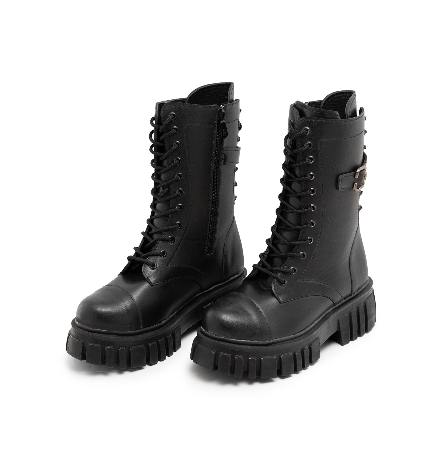 کفش بوت چرم دخترانه رنگ مشکی مدل بندی