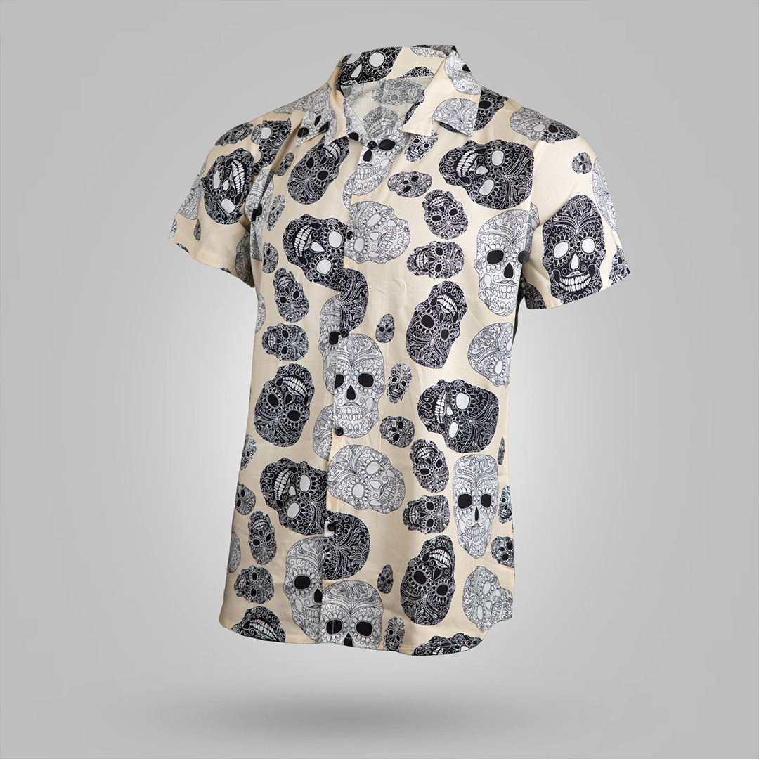 پیراهن هاوایی مردانه ( سفید طرحدار ) 1403 Skeleton