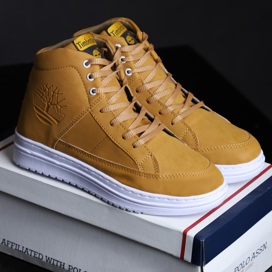 کفش نیم بوت چرم عسلی یا قهوه ای روشن مردانه PMAM