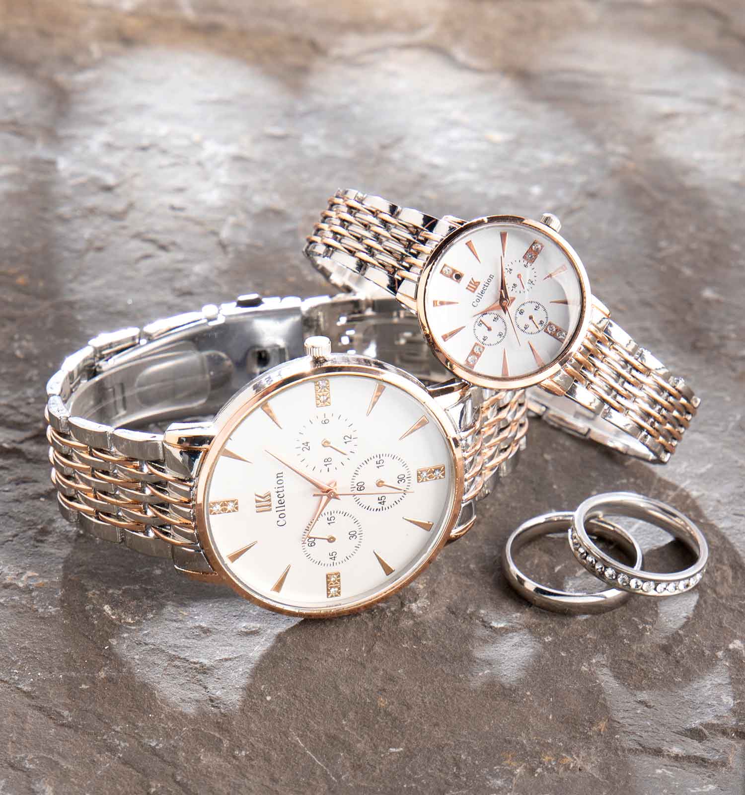 ست ساعت مچی مردانه و زنانه IIK Collection نقره ای طلایی