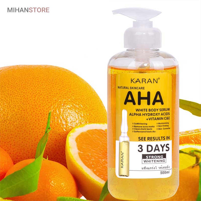 سرم روشن کننده بدن aha با ترکیبات موثری همچون آلفا هیدروکسی اسید (AHA)، ویتامین C و ویتامین E طراحی شده است.