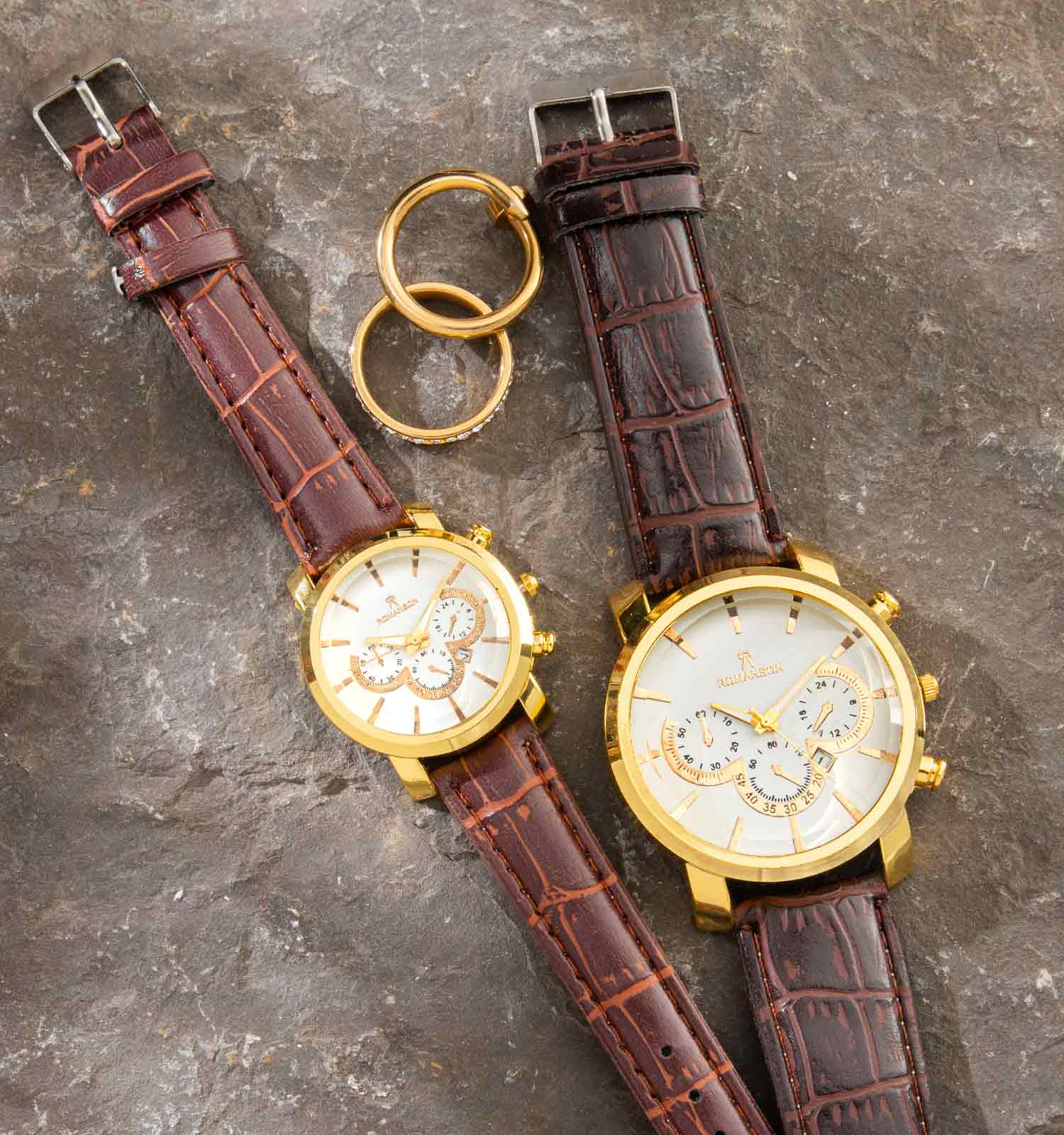 ست مردانه و زنانه بند چرم قهوه ای مدل Romanson