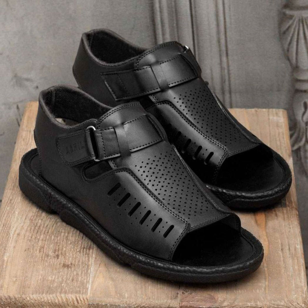 صندل چرم مردانه رنگ مشکی مدل چسبی Open_Front