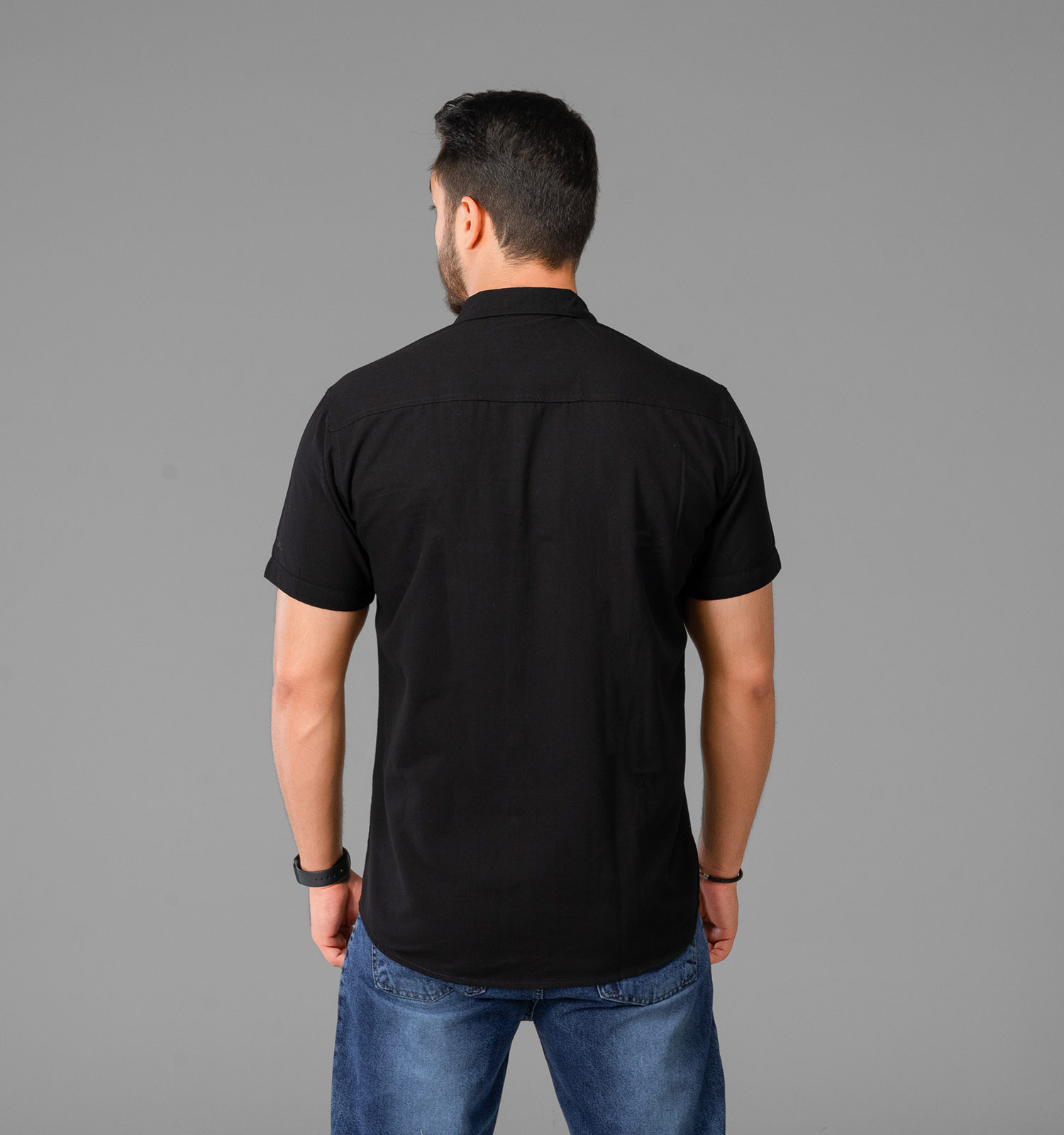 پیراهن مشکی آستین کوتاه مردانه تک جیب ( لینن )