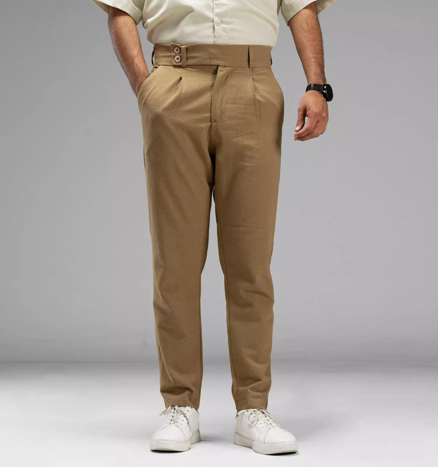شلوار پارچه لینن مردانه رنگ کرم روشن تابستانه