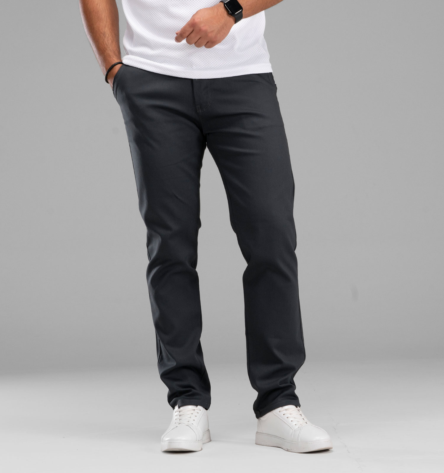 شلوار کتان مردانه کلاسیک رنگ مدادی جیب کراس
