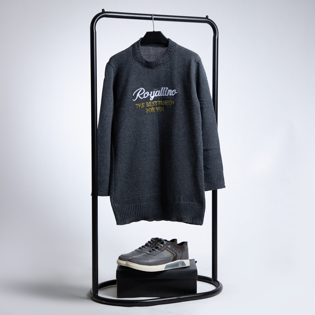 پلیور بافت خاکستری مدل گلدوزی شده مردانه