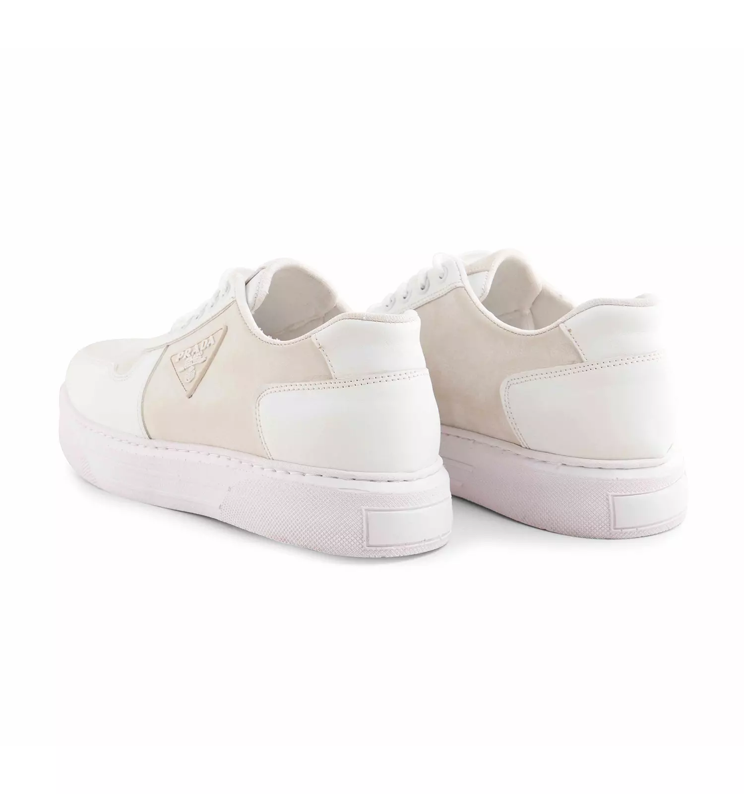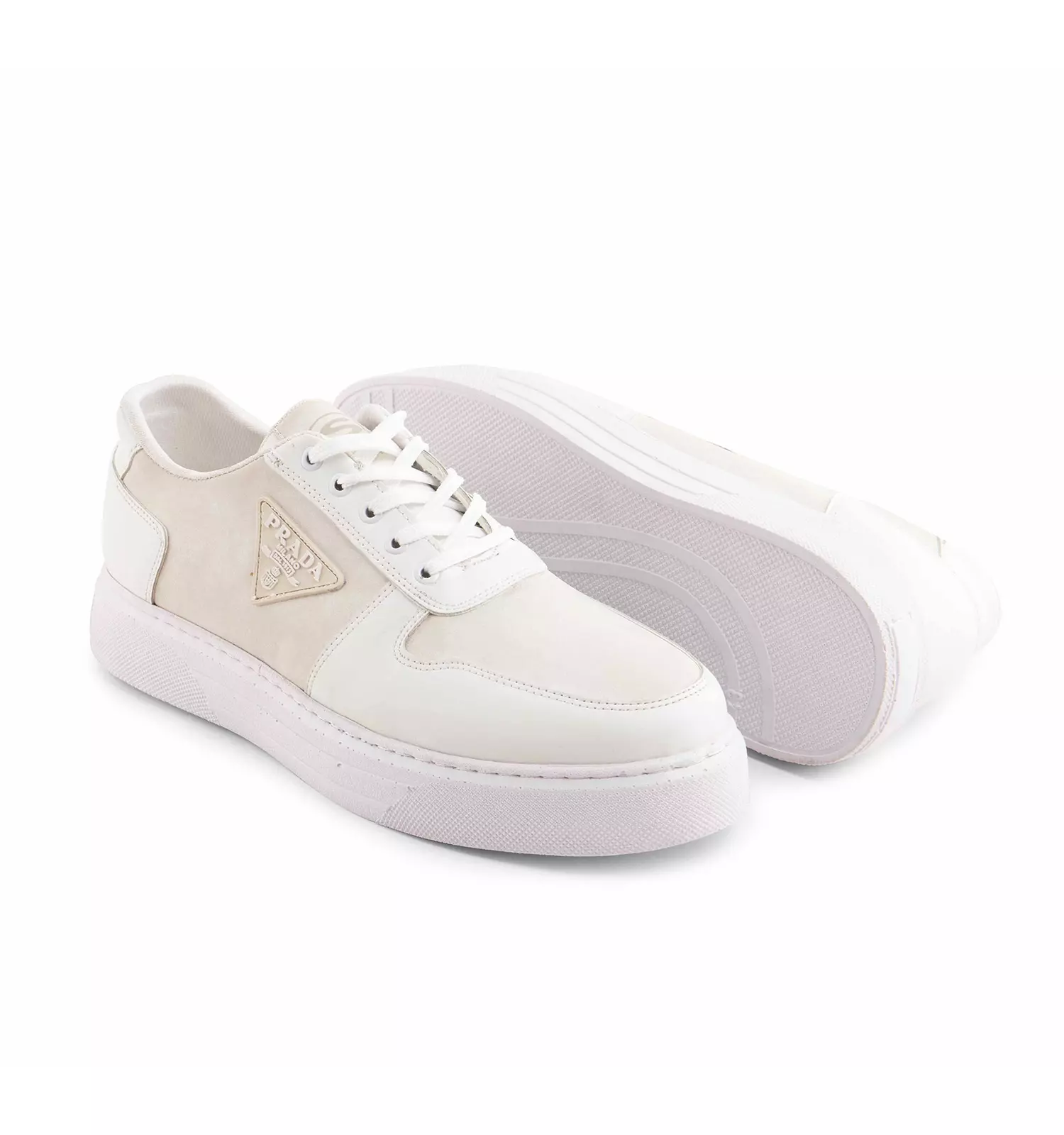 کفش چرم اسپرت سفید تخت صاف مردانه برند Prada