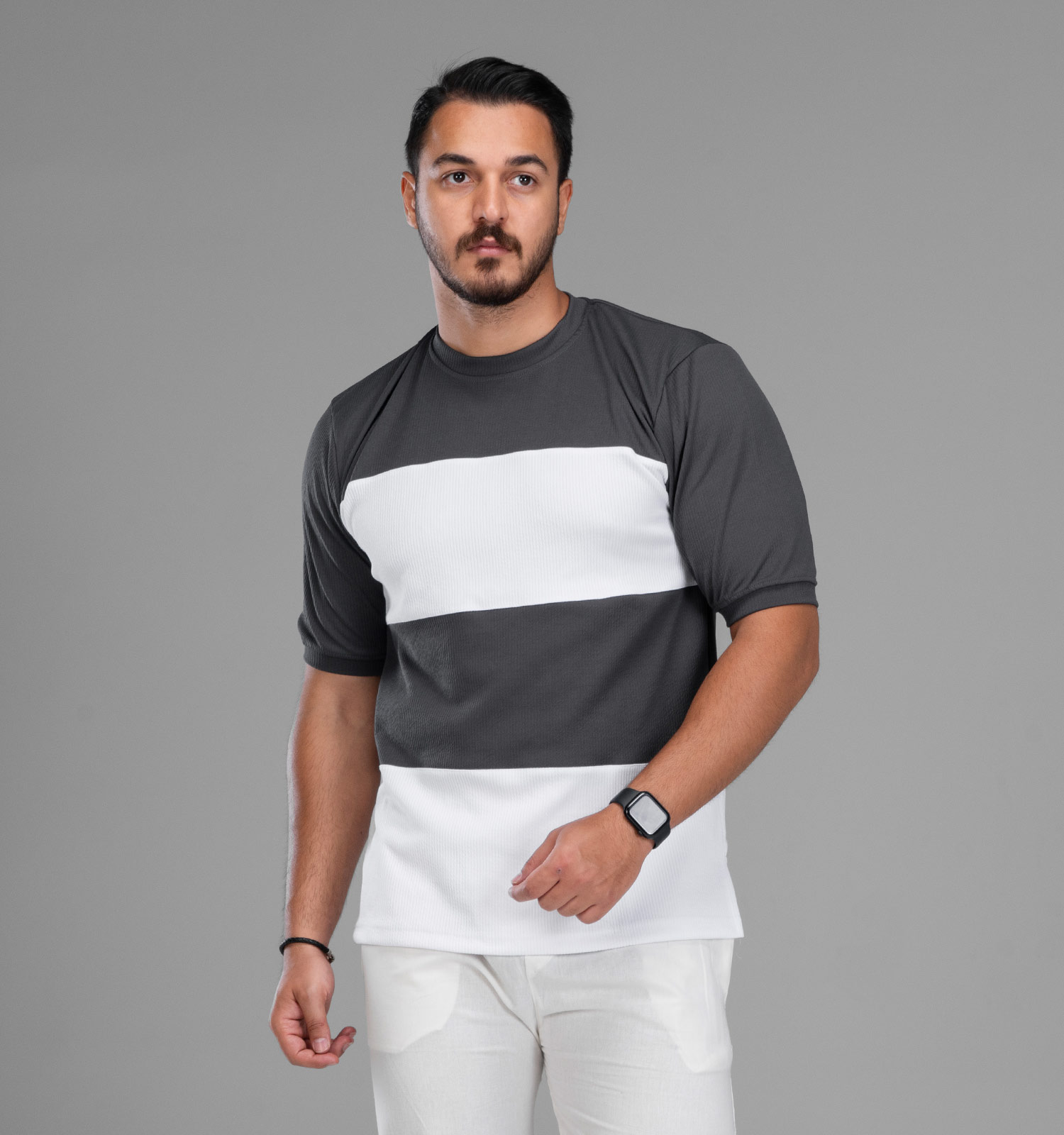 ظاهری بسیار شیک و امروزی را با این تیشرت راه راه مردانه شکل دهید.