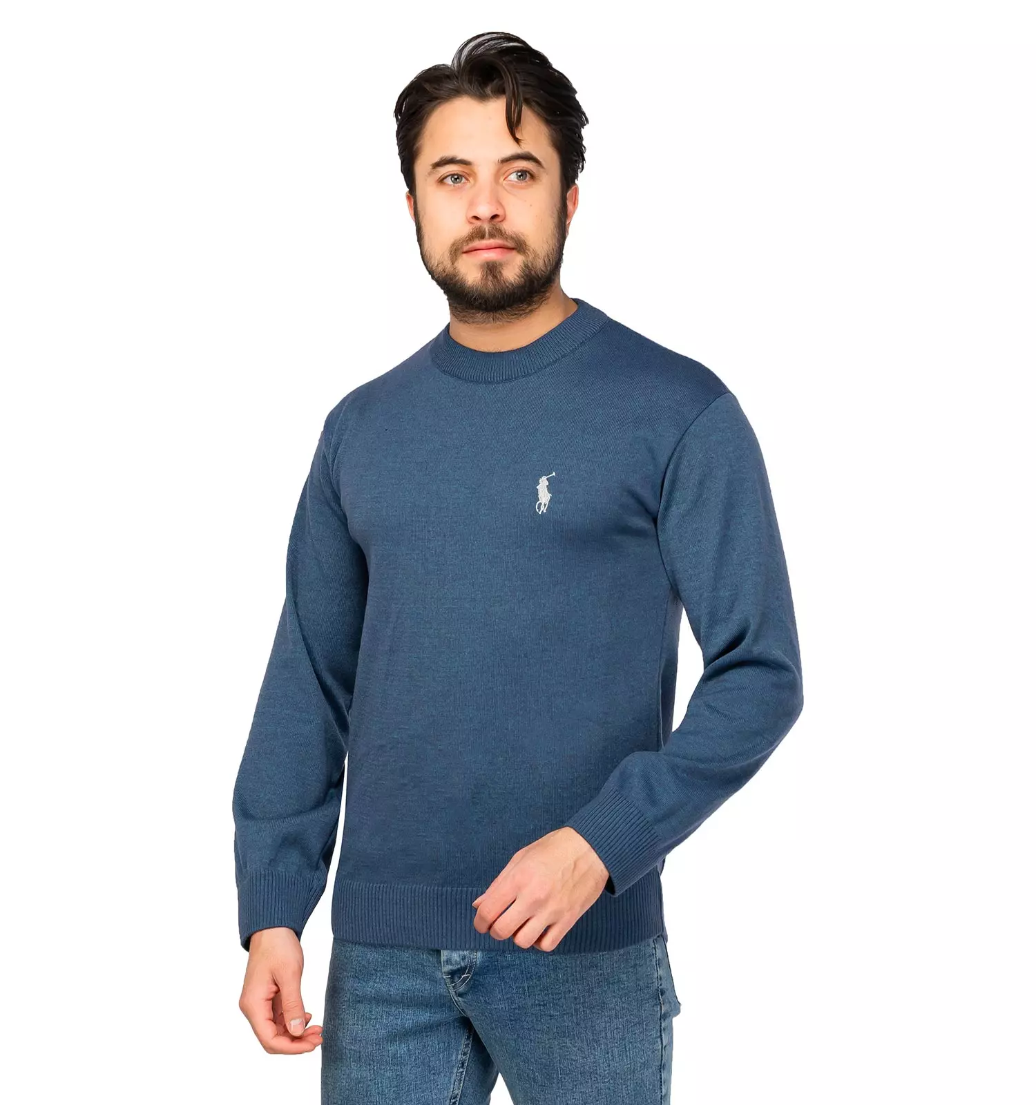 پلیور بافت مردانه پولو رنگ سرمه ای یقه گرد