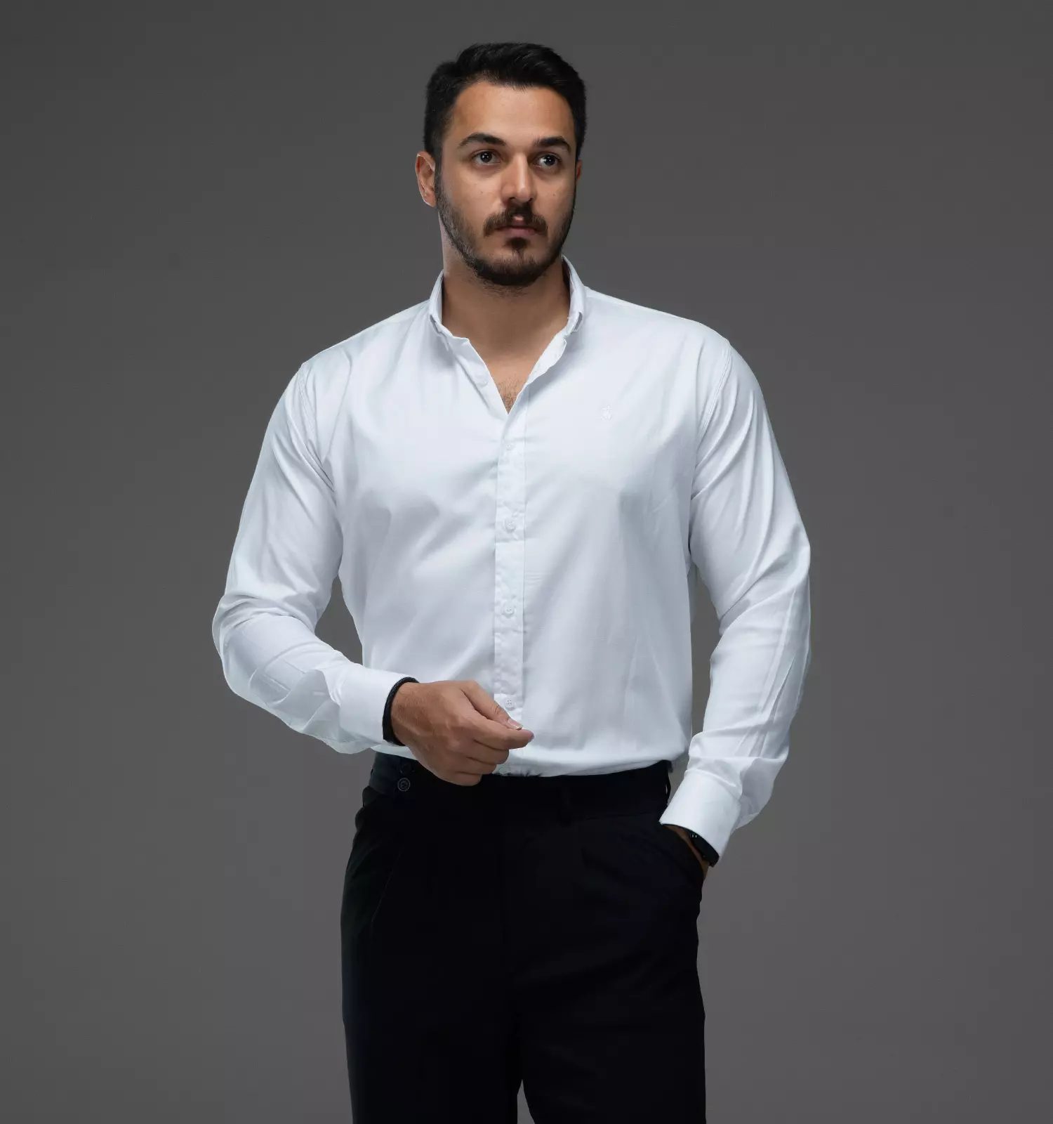 پیراهن آستین بلند مردانه رنگ سفید جنس نخی