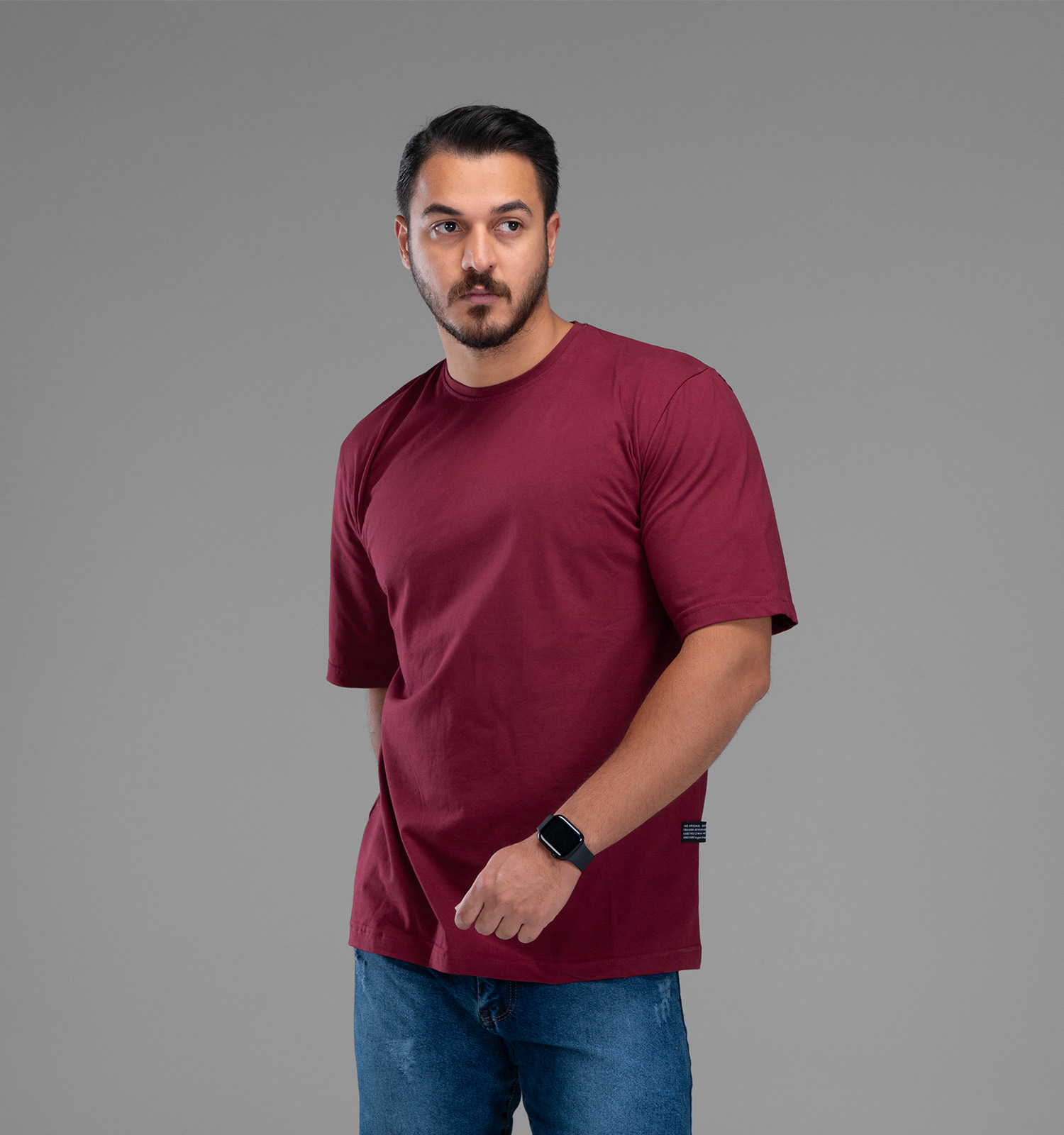 تیشرت زرشکی مردانه مدل بیسیک ساده لانگ