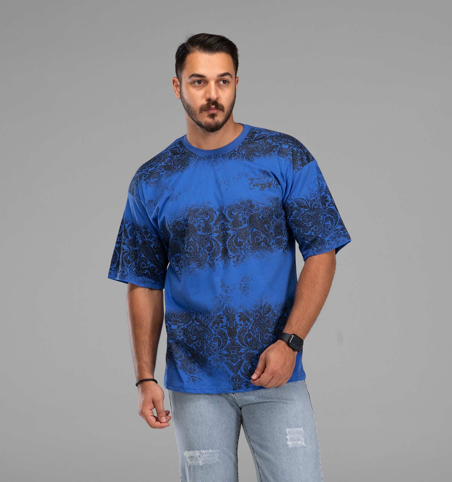 😎 استایلی بسیار شیک و خفن را با این تیشرت آبی تجربه کنید 🤩