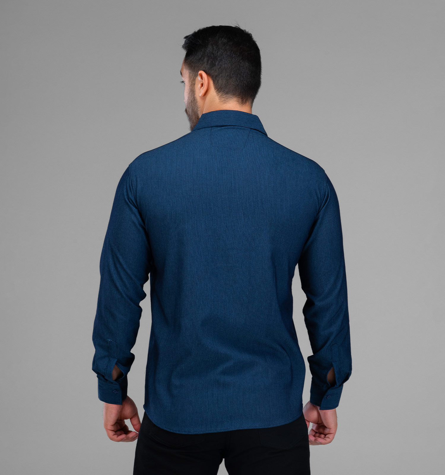 ظاهری بسیار شیک و کژوال کلاسیک را با این مدل پیراهن سرمه ای شکل دهید.