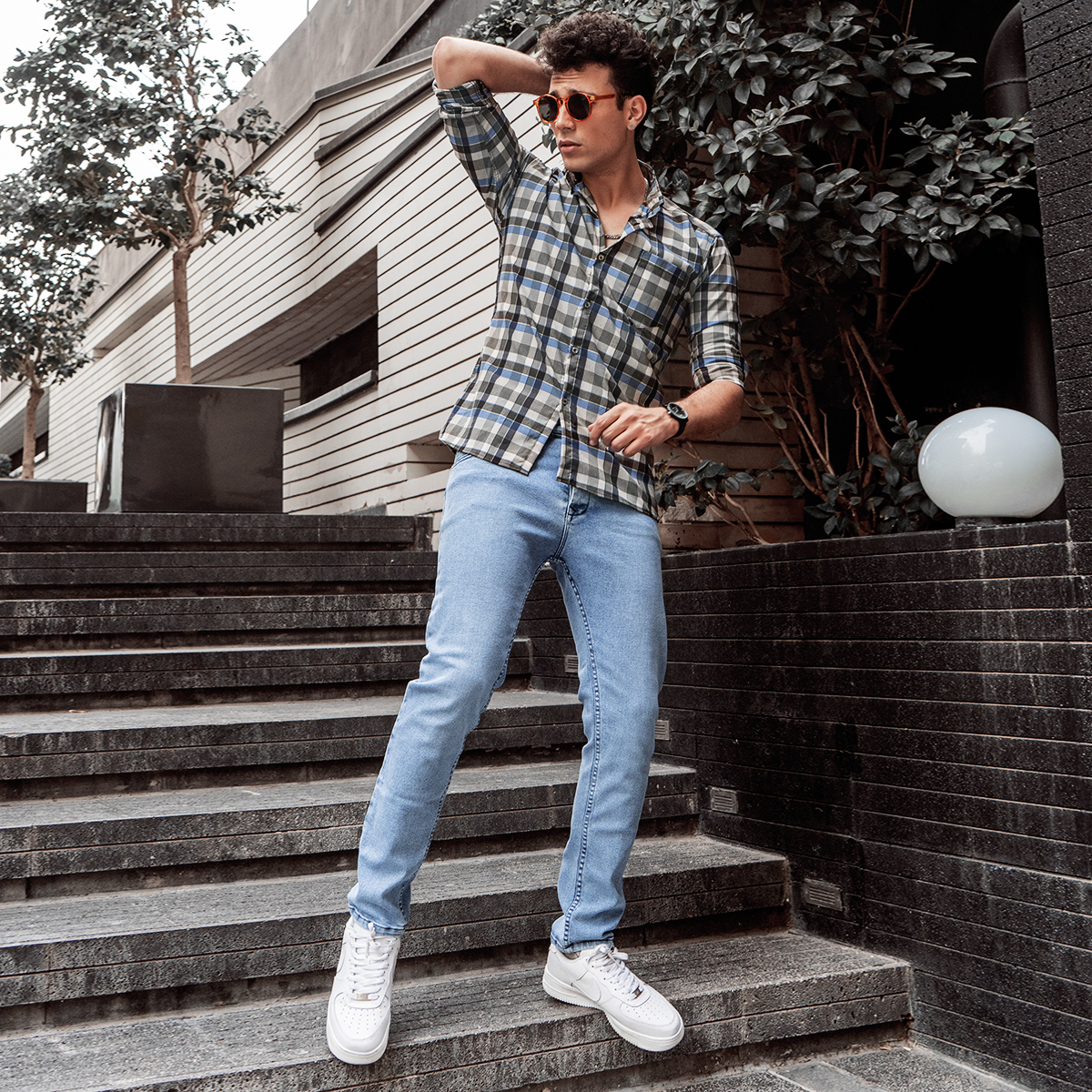 پیراهن آستین بلند نخی طرح چهارخونه مناسب انواع تیپ و استایل آقایان😎