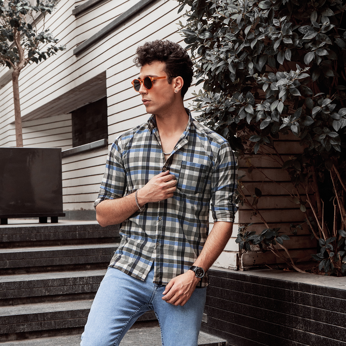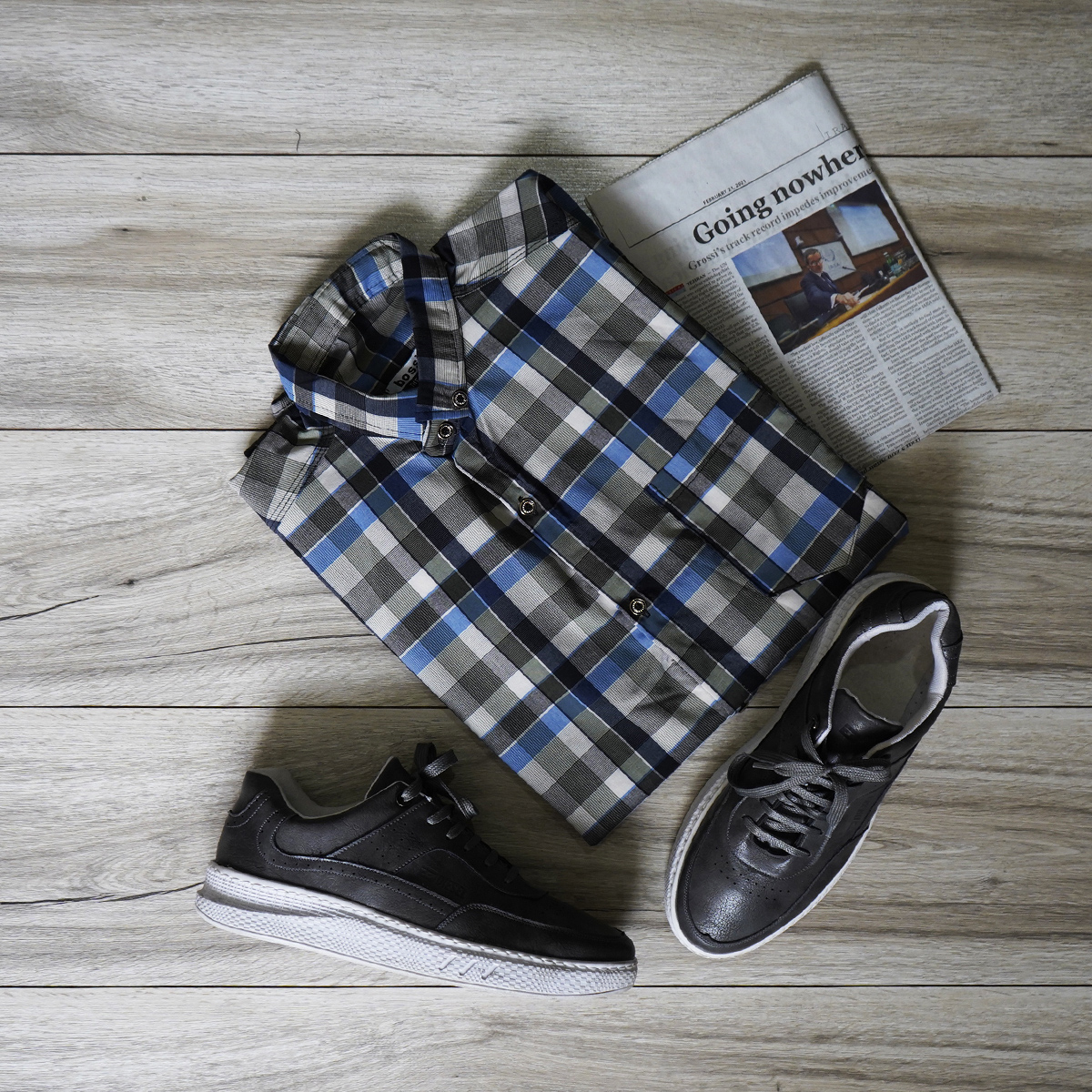 پيراهن چهارخانه مردانه اسپرت آبی طوسی 2022 جدید مدل Polder