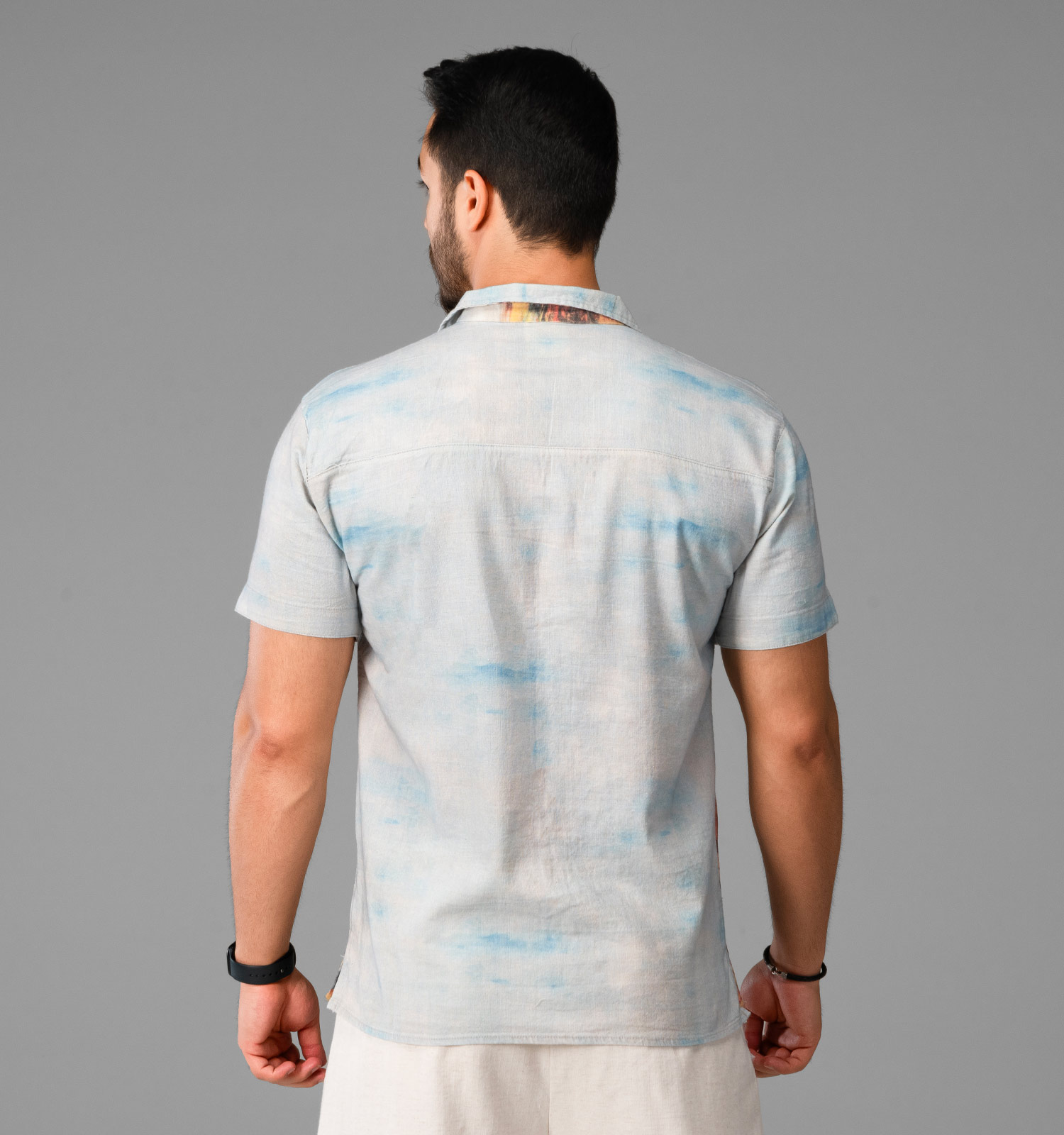 پیراهن لنین مردانه آستین کوتاه طرحدار