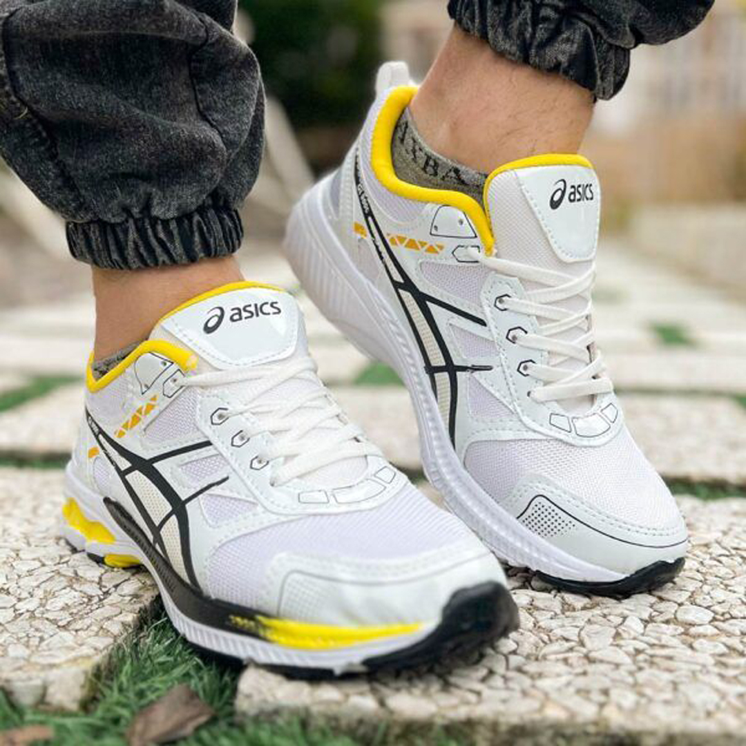 کفش کتانی مردانه مدل سفید زرد برند Asics
