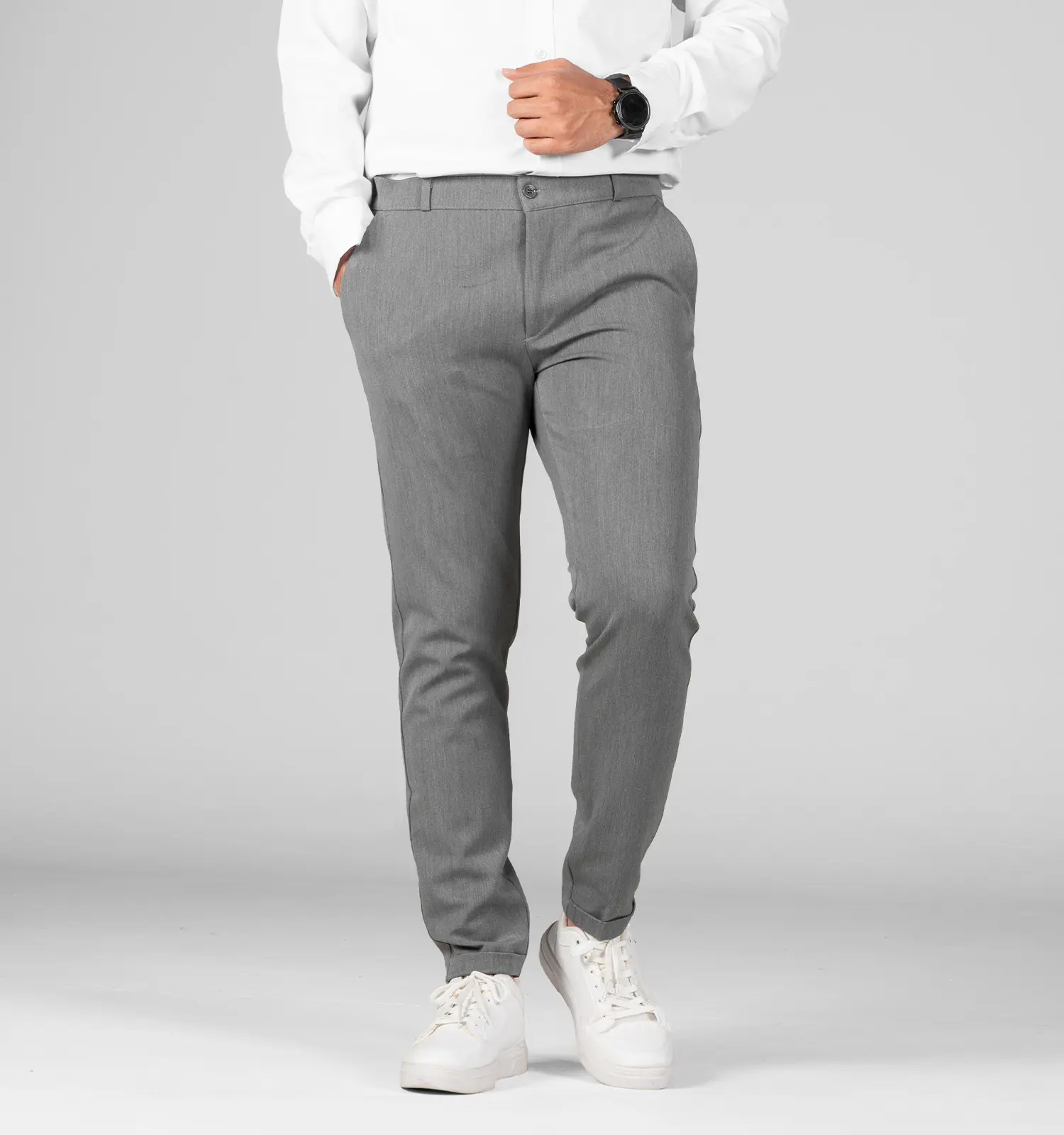 شلوار کلاسیک پارچه ای از رنگ مشکی و طوسی و پاخور نسبتا جذب و خاصیت کشسانی عالی برخوردار است.