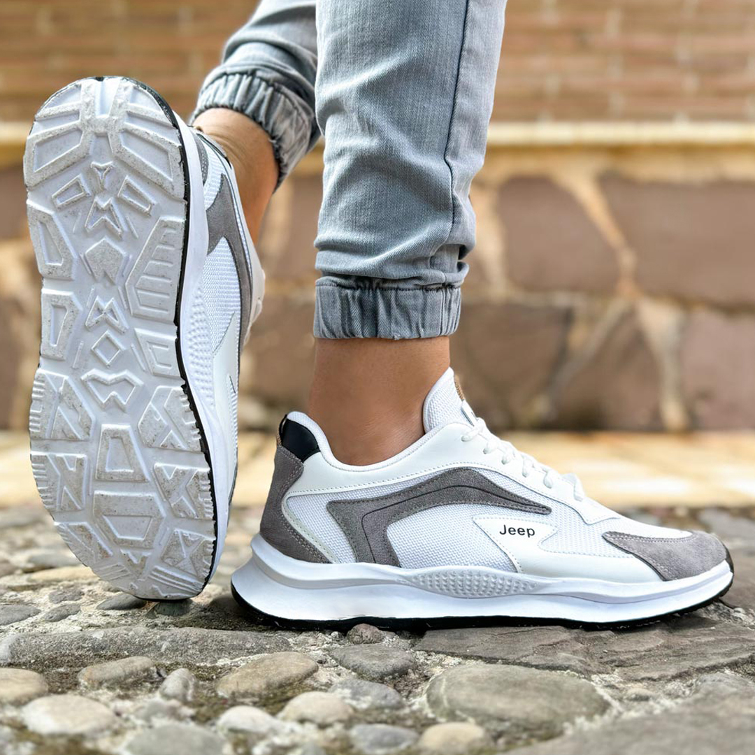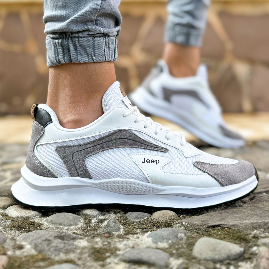 کفش کتانی مردانه ورزشی Jeep طوسی سفید