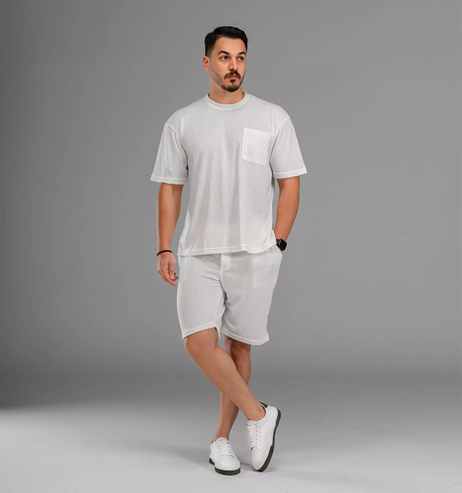 ست تیشرت و شلوارک مردانه مراکشی سفید جیب دار