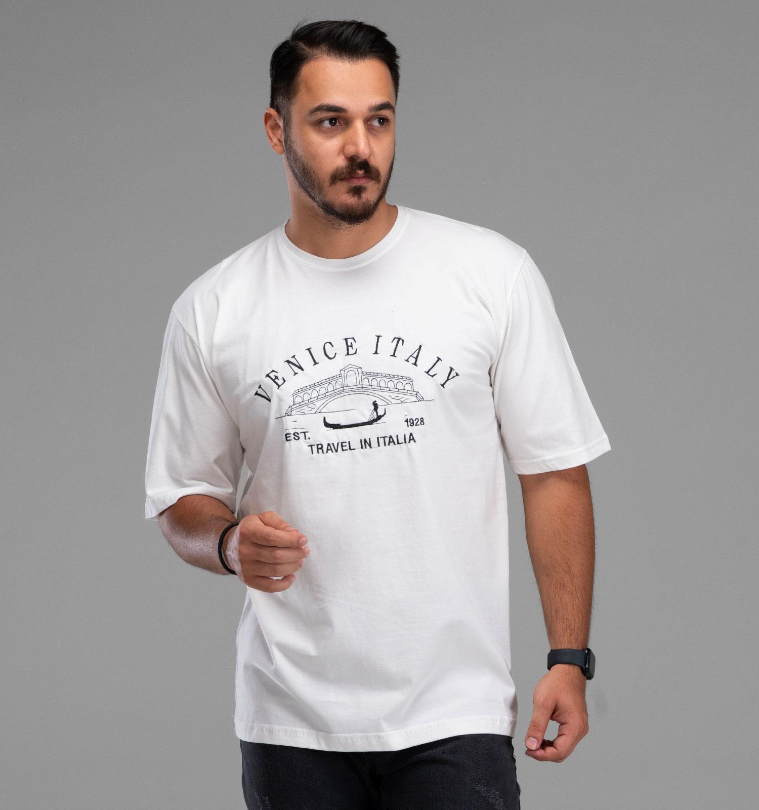 تیشرت سفید مردانه مدل آستین کوتاه Veniz