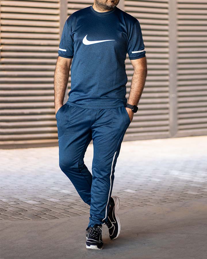 این مدل ست تیشرت شلوار مردانه طرح نایکی با رنگ سرمه ای است.