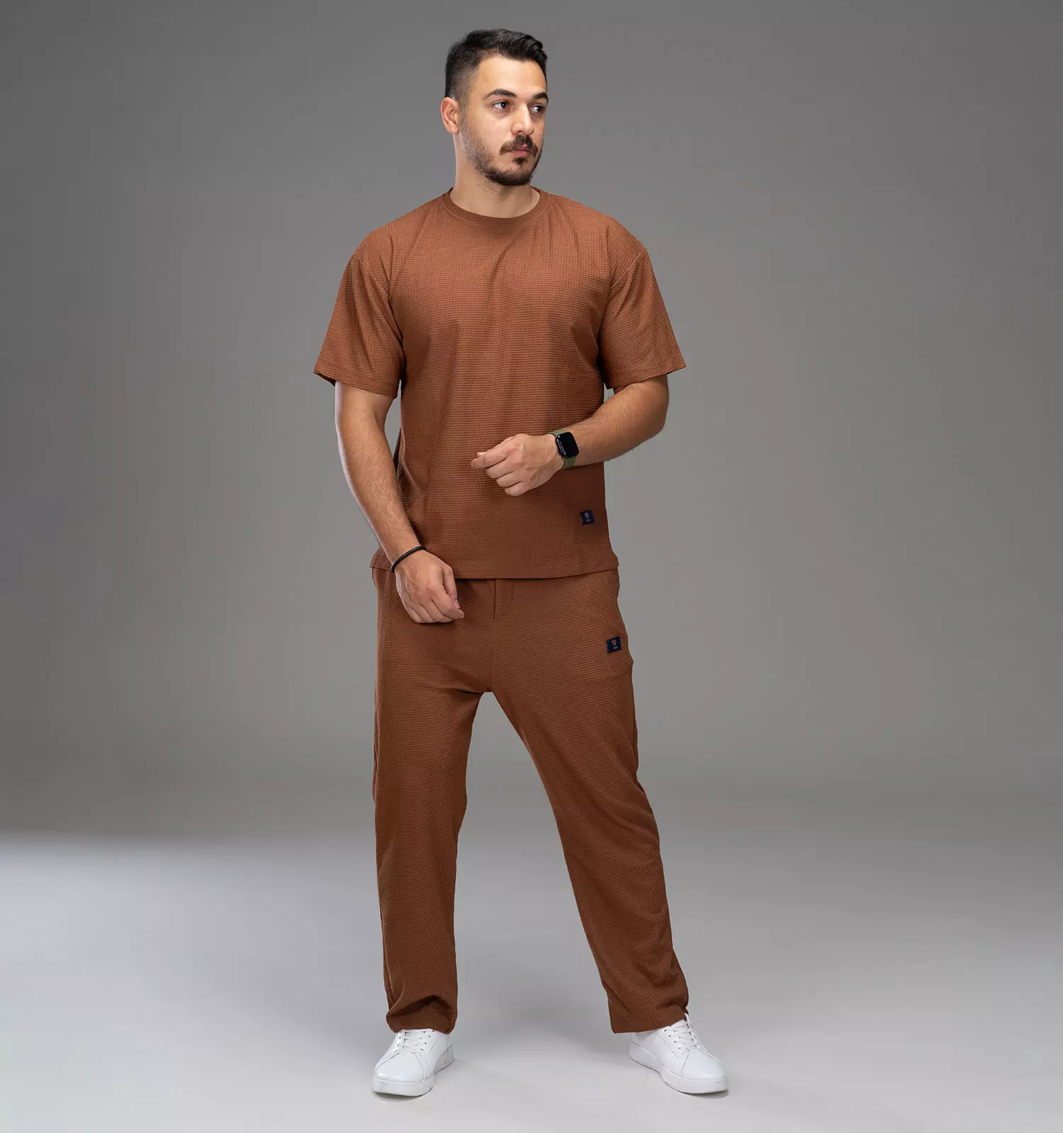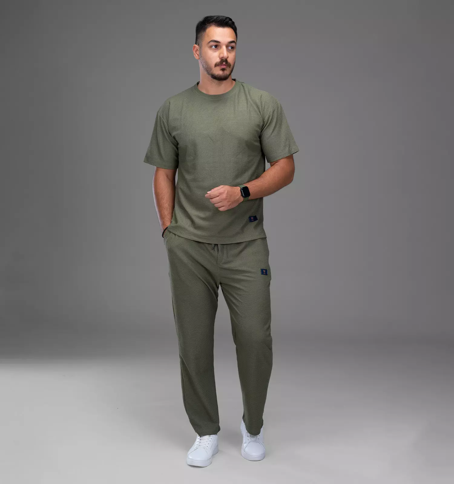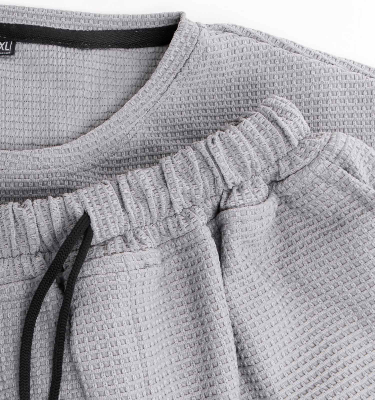 که رنگ این ست طوسی و مناسب برای ست کردن با انواع رنگ کفش کتانی آقایان است.