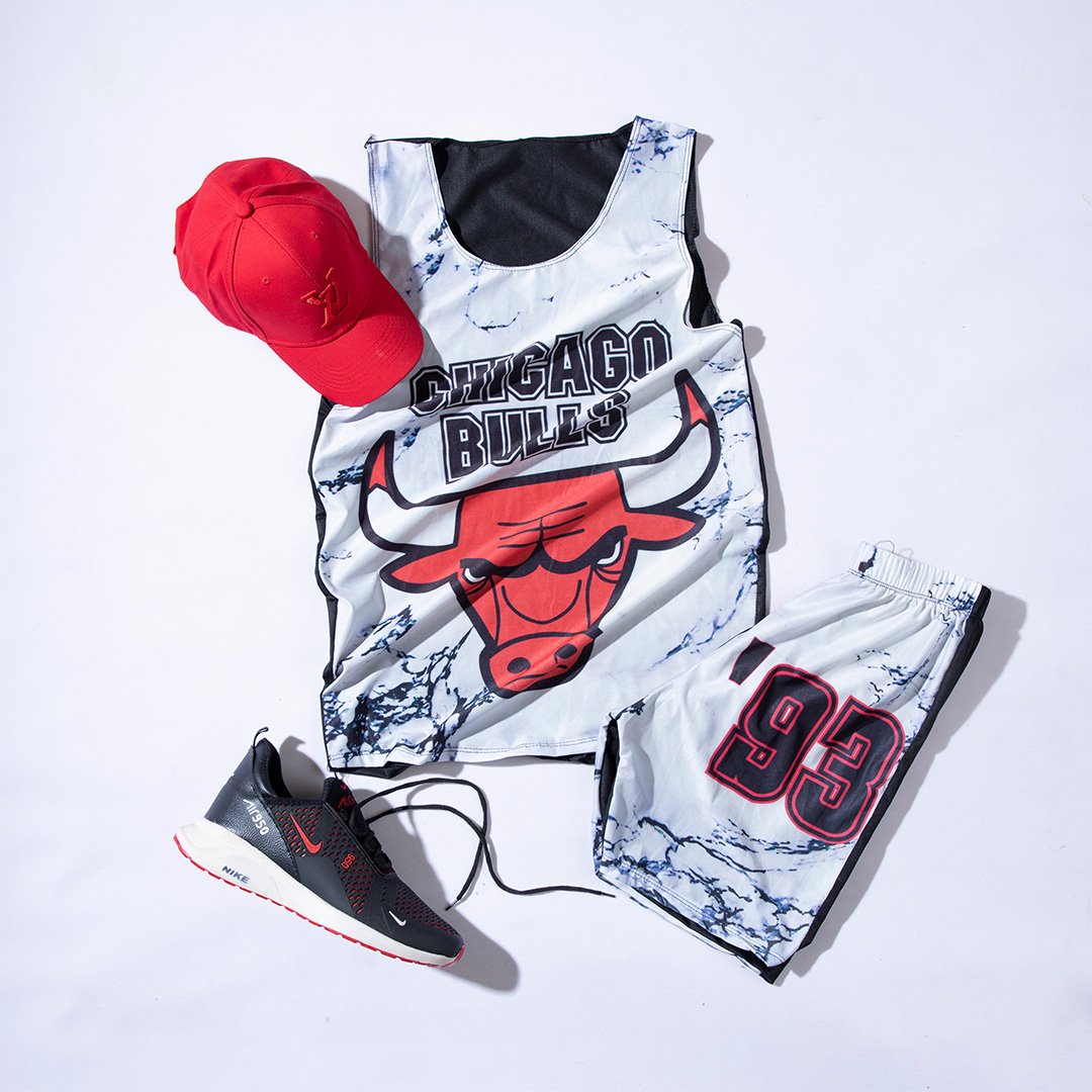ست رکابی شلوارک مردانه مدل پرچم Chicago Bulls جدید