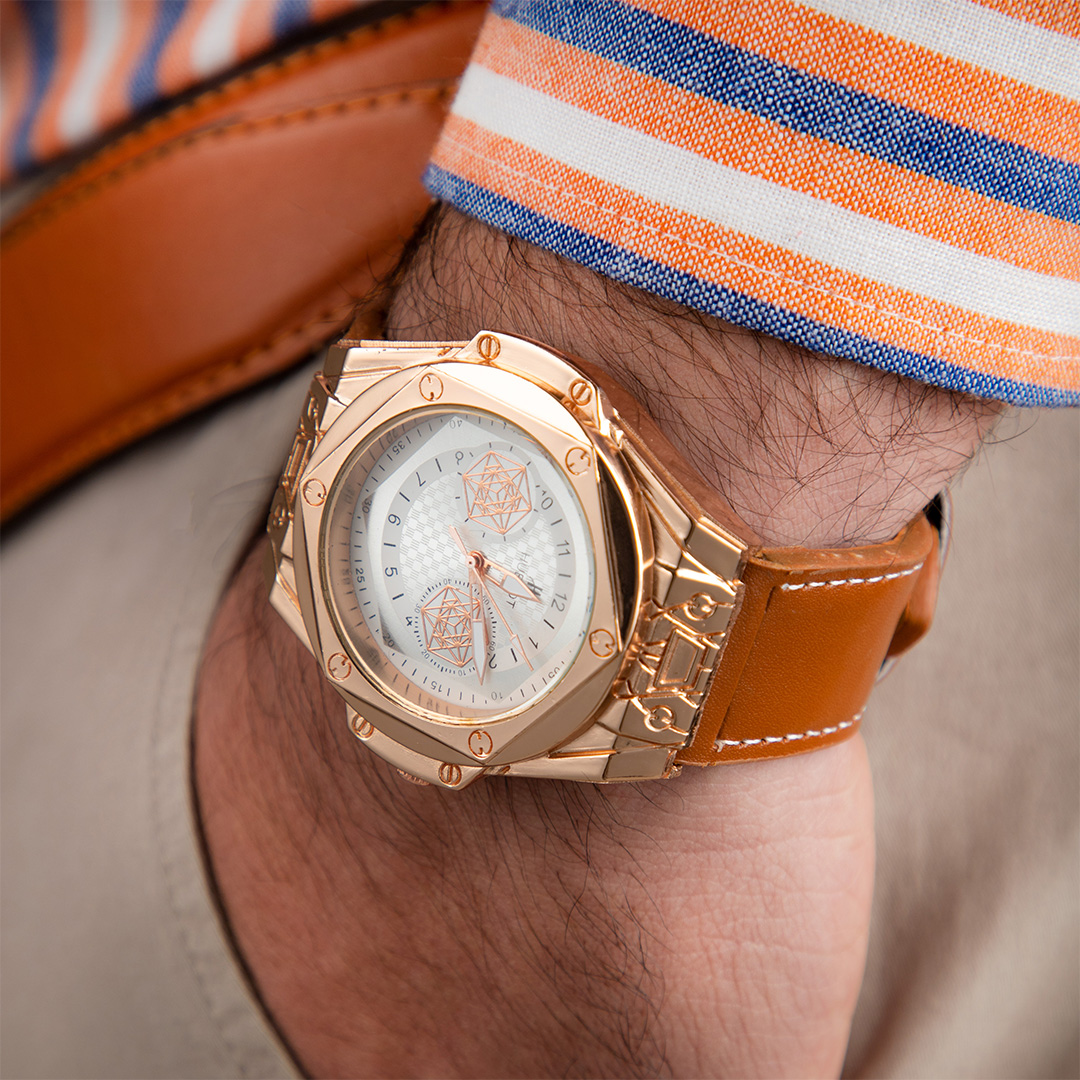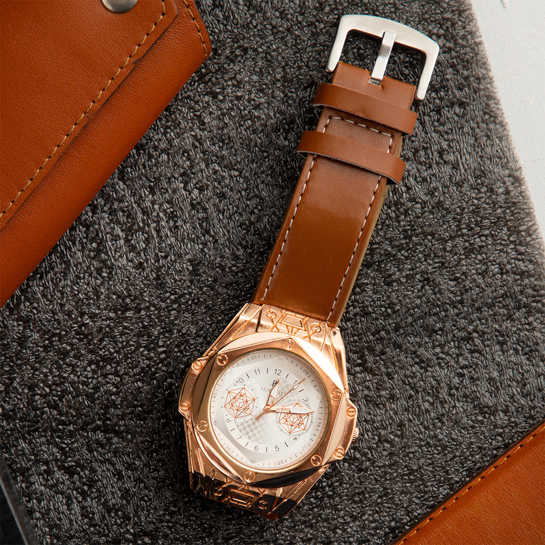 ساعت مچی بند چرمی قهوه ای مدل مردانه هابلوت طلایی Hublot_gold
