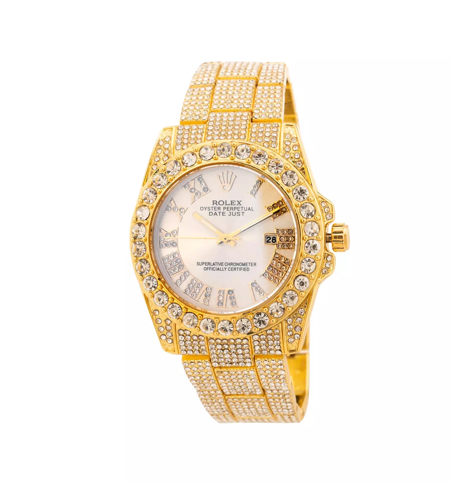 👌🏻ساعت مچی دخترانه رنگ طلایی فول نگین برند Rolex