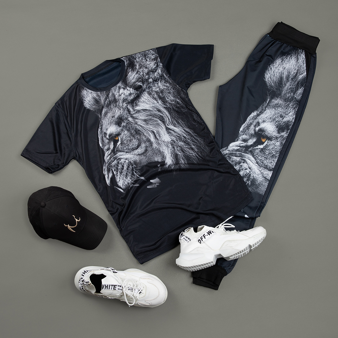 ست تیشرت مشکی Lion و شلوار اسلش مردانه