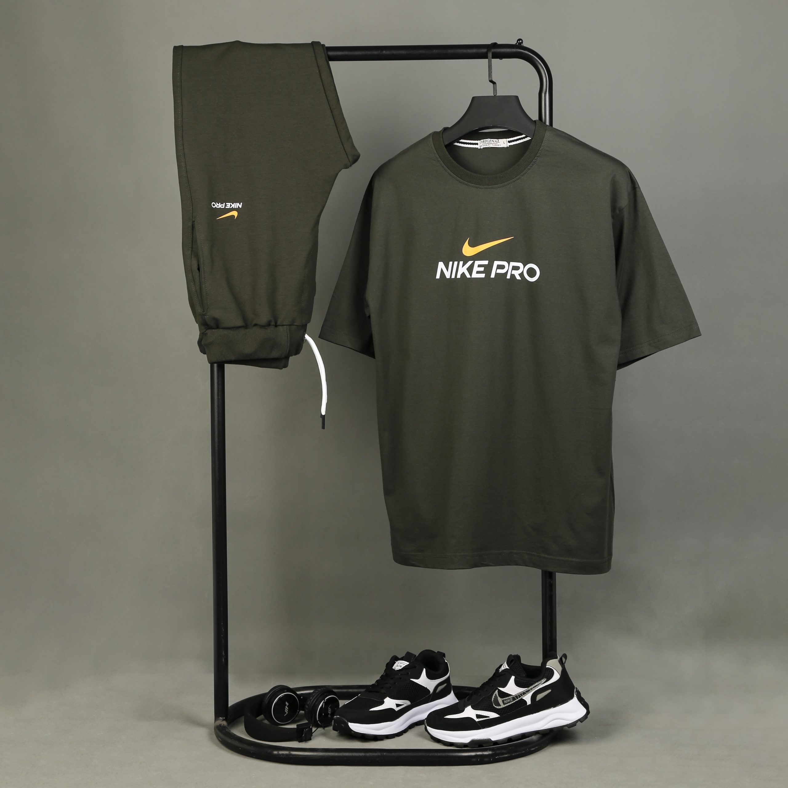 ست تیشرت شلوار اسلش مردانه سبز Nike Pro