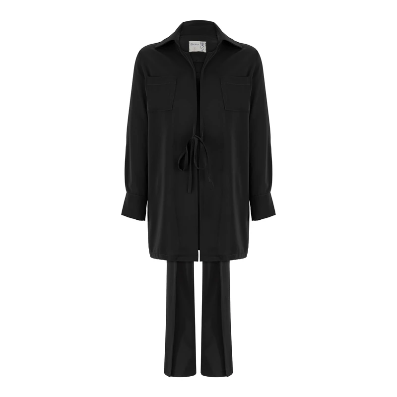 ست مانتو مشکی با شلوار پارچه ای زنانه