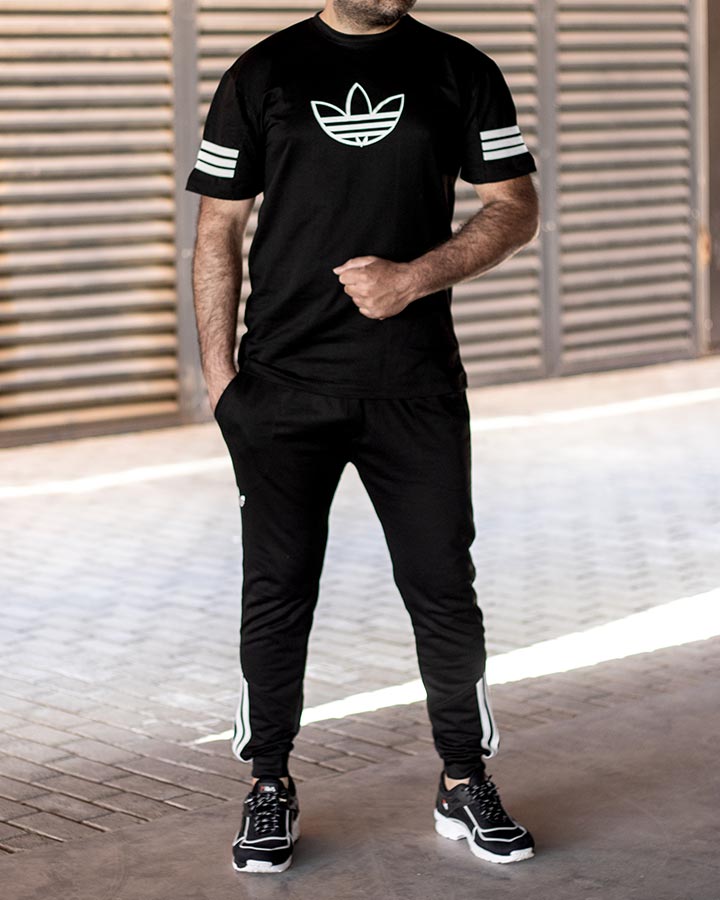 ست تیشرت شلوار اسلش مردانه رنگ مشکی از تن پوش نسبتا اندامی و استایل راحت برخوردار است.