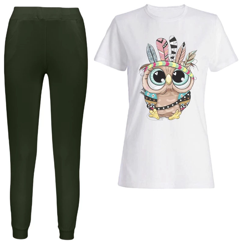 ست زنانه تیشرت شلوار اسلش طرح جغد سرخپوست